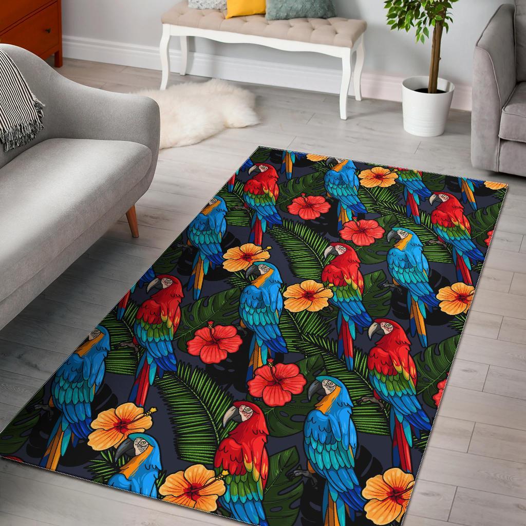 Floral Parrot Bird Pattern Print Home Decor Rectangle Area Rug
