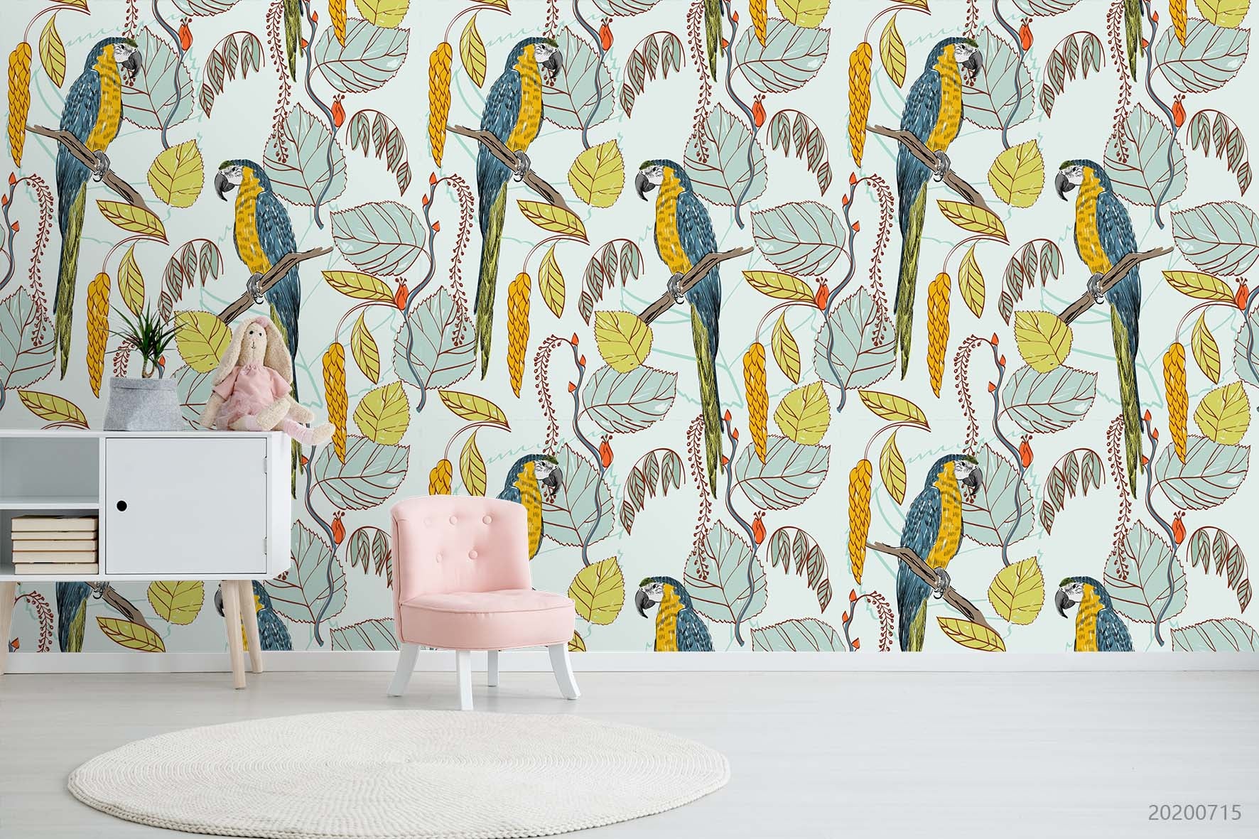 3D Parrot Leaves Wall Mural Wallpaper Sf742