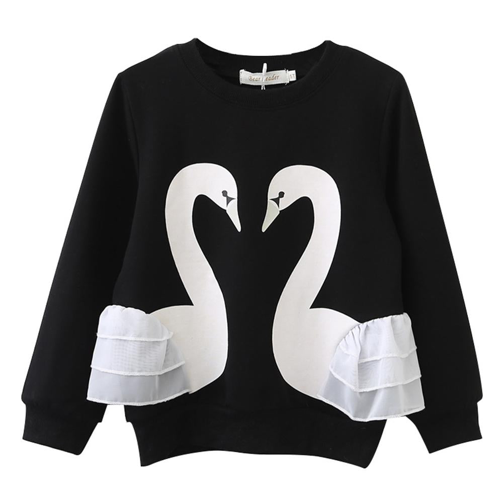 2018 Girls Clothing Girls Swan Print Cotton Long Sleeve Sweatshirt Spring Autumn Kids Clothes