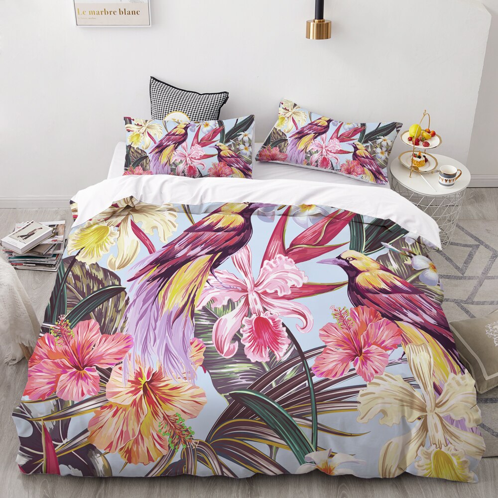 3D Bedding Set Custom/King/Europe/Usa,Duvet Cover Set Queen/King,/Blanket Cover Set,Bedclothes Colorful Bird Oil Painting