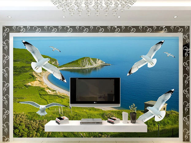 3D Blue Sea Meadow Seagull Wall Mural Wallpaper Lqh 163