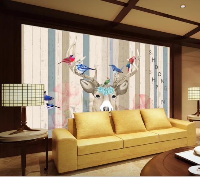 3D Elk Bird Stripes Wall Mural Wallpaper 243
