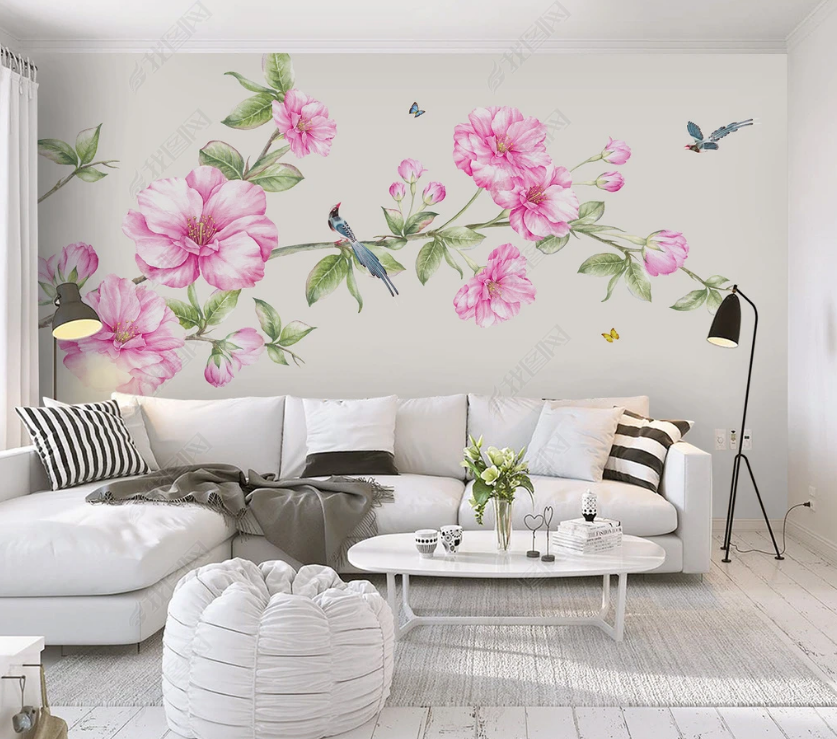 3D Hand-Painted Pink Floral Peony Bird Wall Mural Wallpaper Sww3234