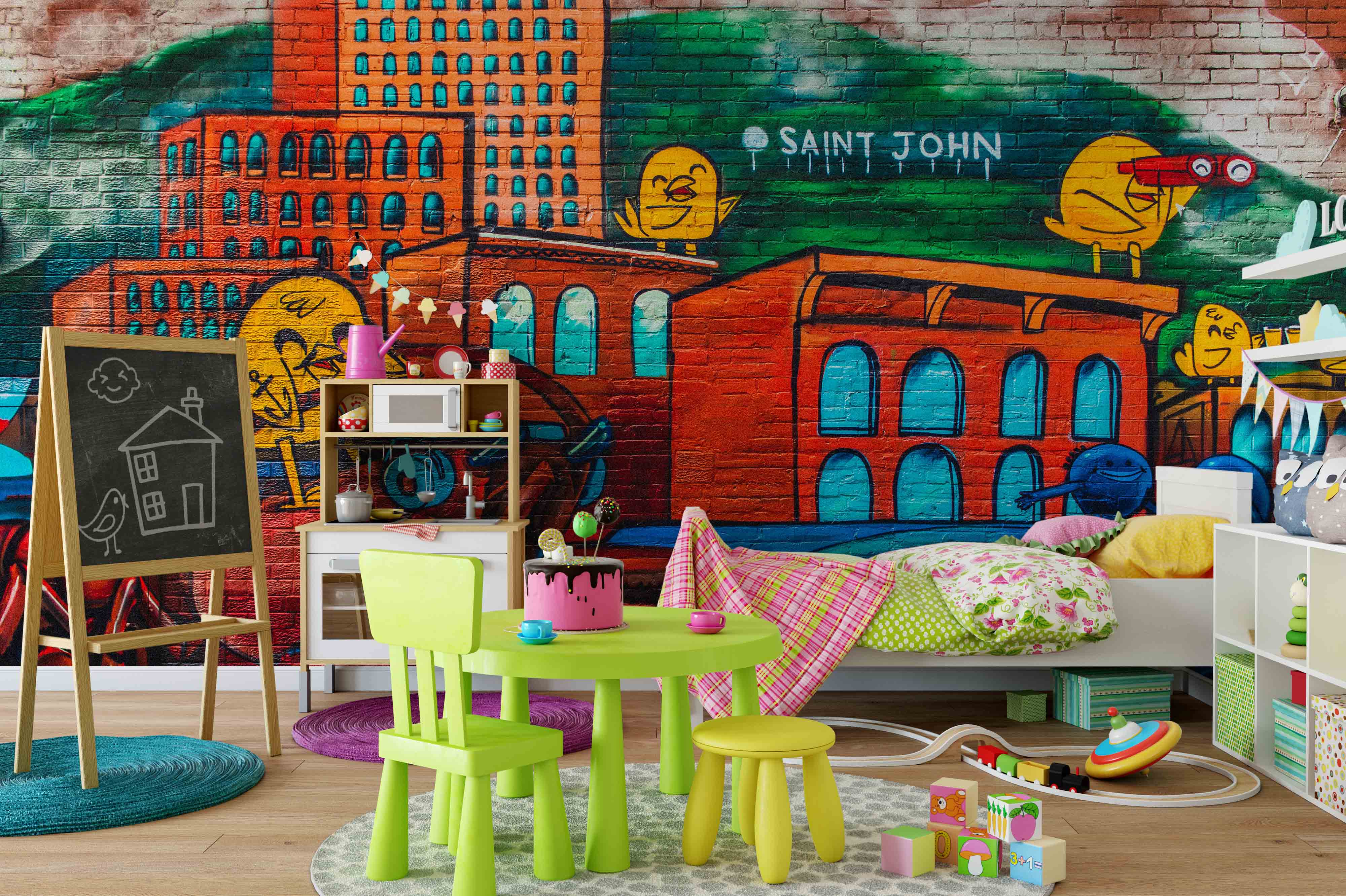 3D Hand Painting Cartoon Bird Building Wall Mural Wallpaper B84