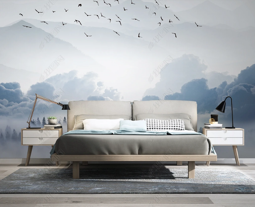 3D Mountain Cloud Bird Landscape Wall Mural Wallpaper Lqh 1