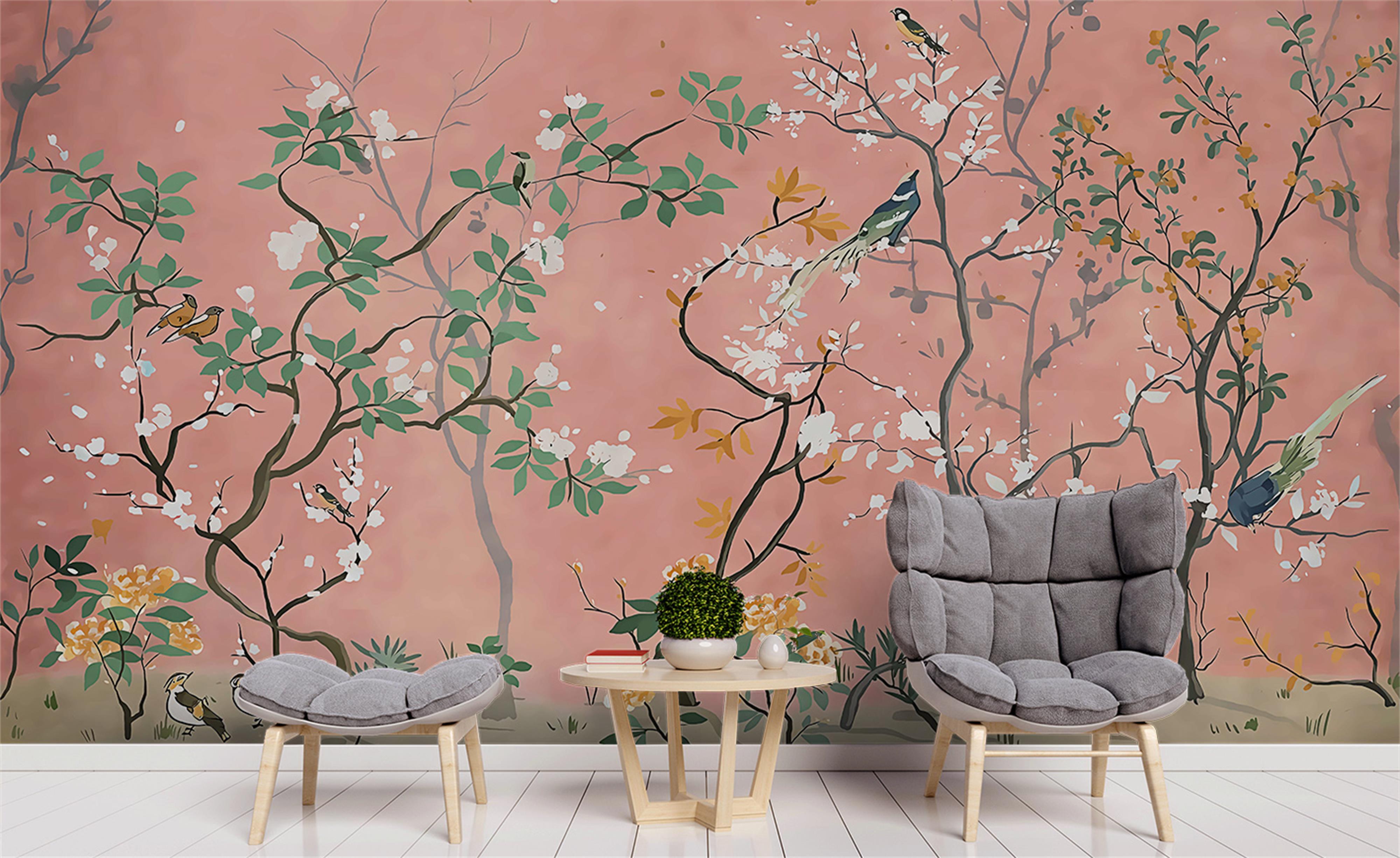 3D Red Branch Birds Wall Mural Wallpaper Sf113