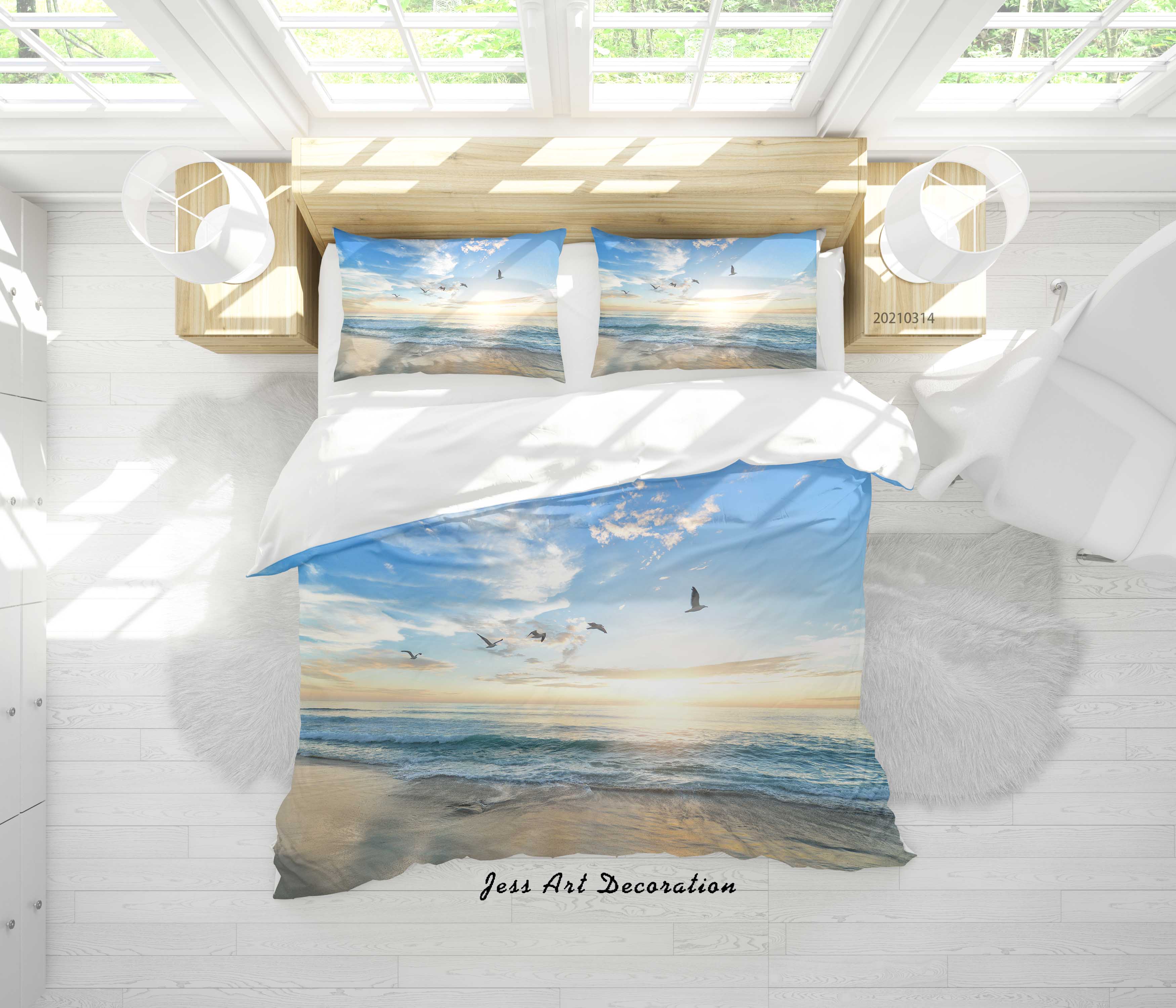 3D Sunset Sky Sea Seagull Quilt Cover Set Bedding Set Duvet Cover Pillowcases 137