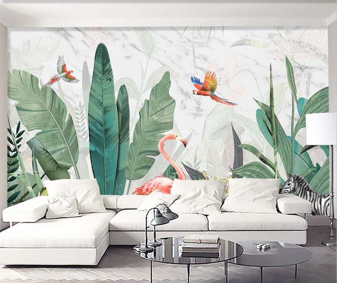 3D Tropical Jungle Bird Marble Wall Mural Wallpaper Lqh 245