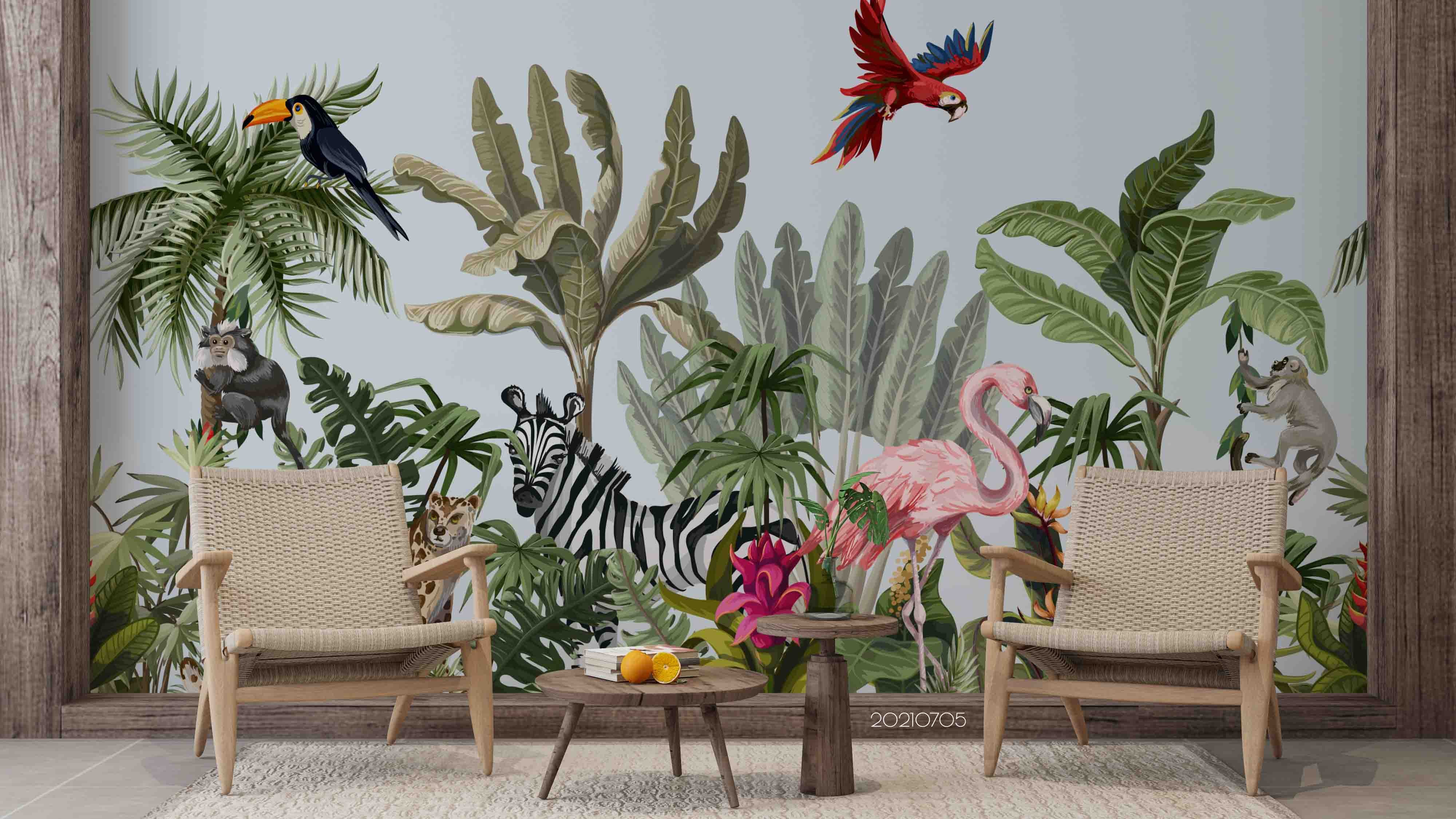 3D Tropical Jungle Flamingo Bird Wall Mural Wallpaper Lqh 118