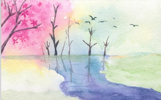 3D Watercolor Blossom Tree Bird Wall Mural Wallpaper 424