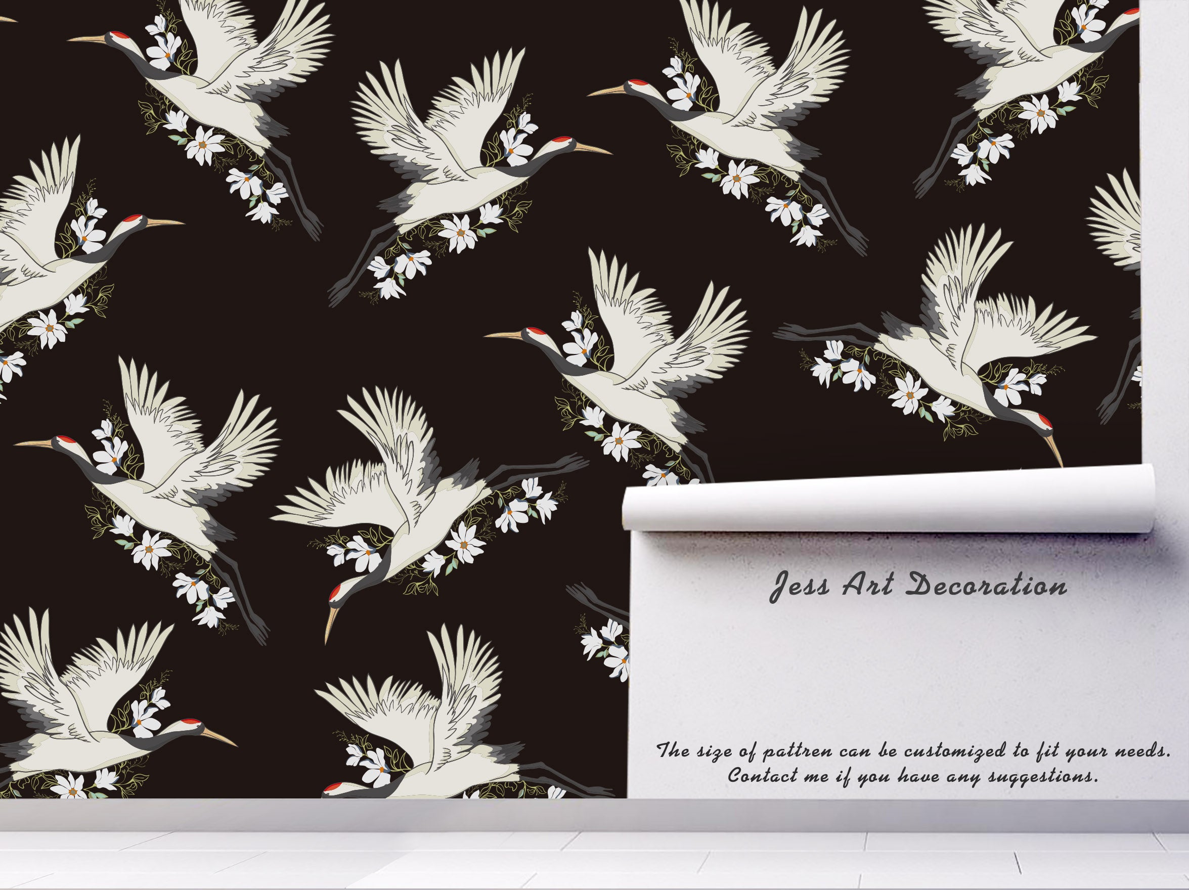 3D White Floral Bird Black Background Wall Mural Wallpaper 04