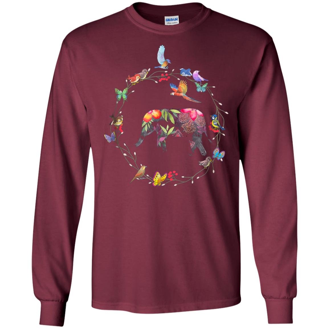 An Elephant, Birds And Fowers, T-Shirt For Animal Lovers