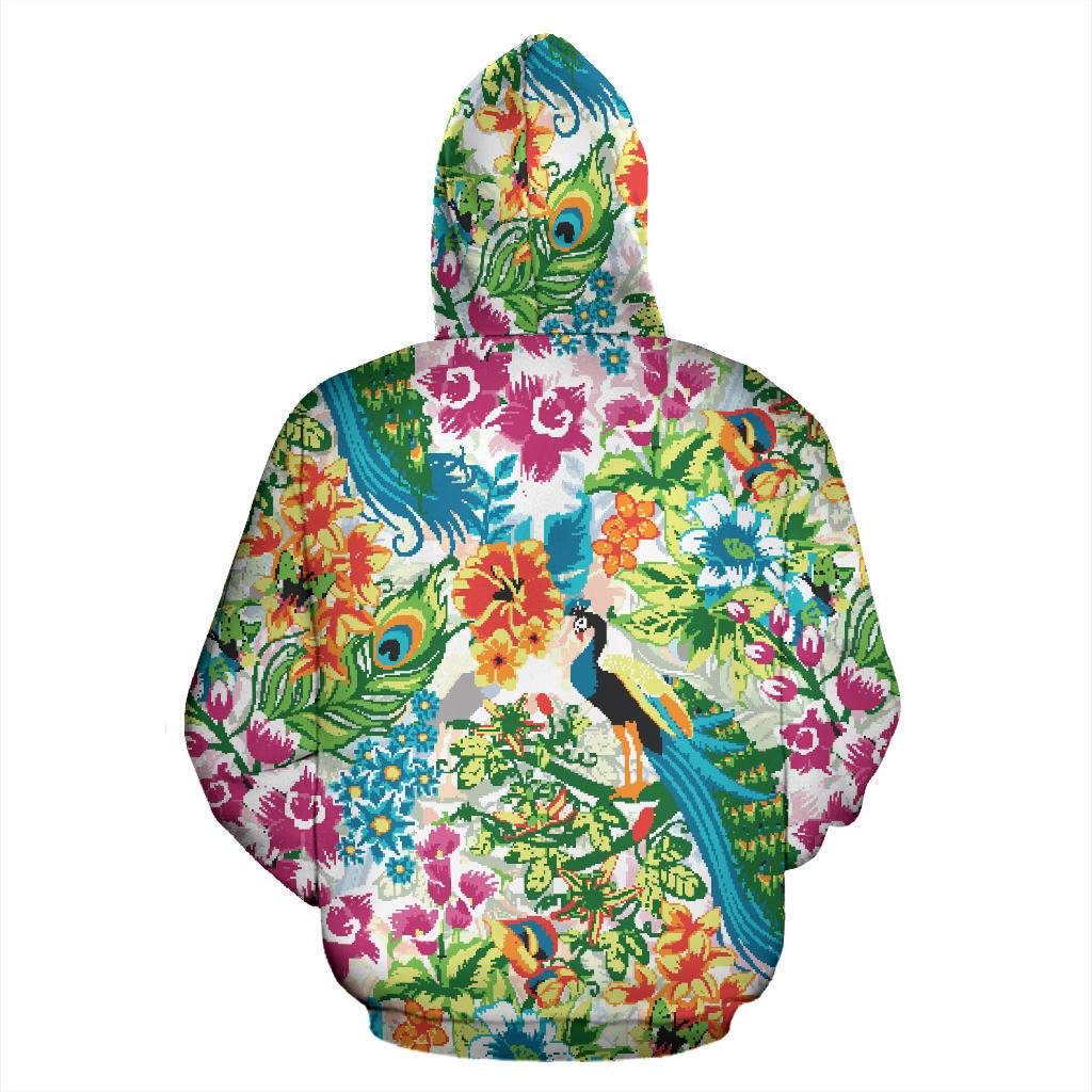 • Womens Hoodie - Colorful Peacock Pattern Pullover Hoodie