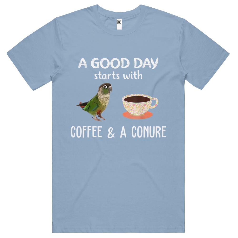 Green Cheek Conure Clothing, Good Day Coffee Conure Parrot T Shirts