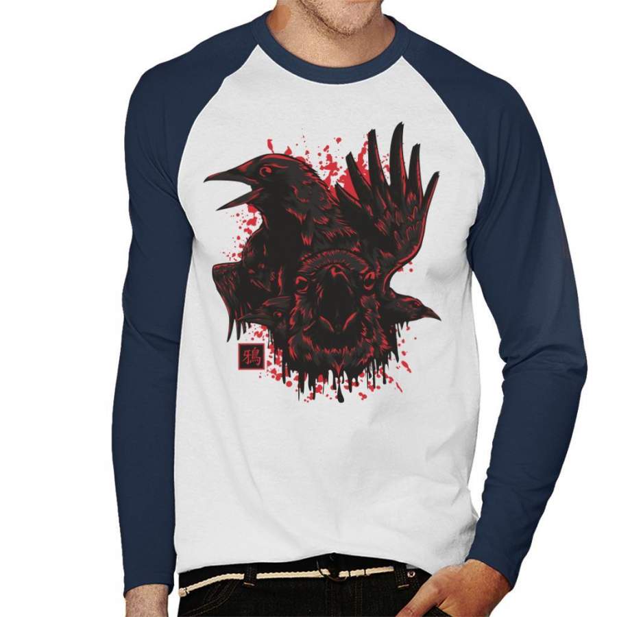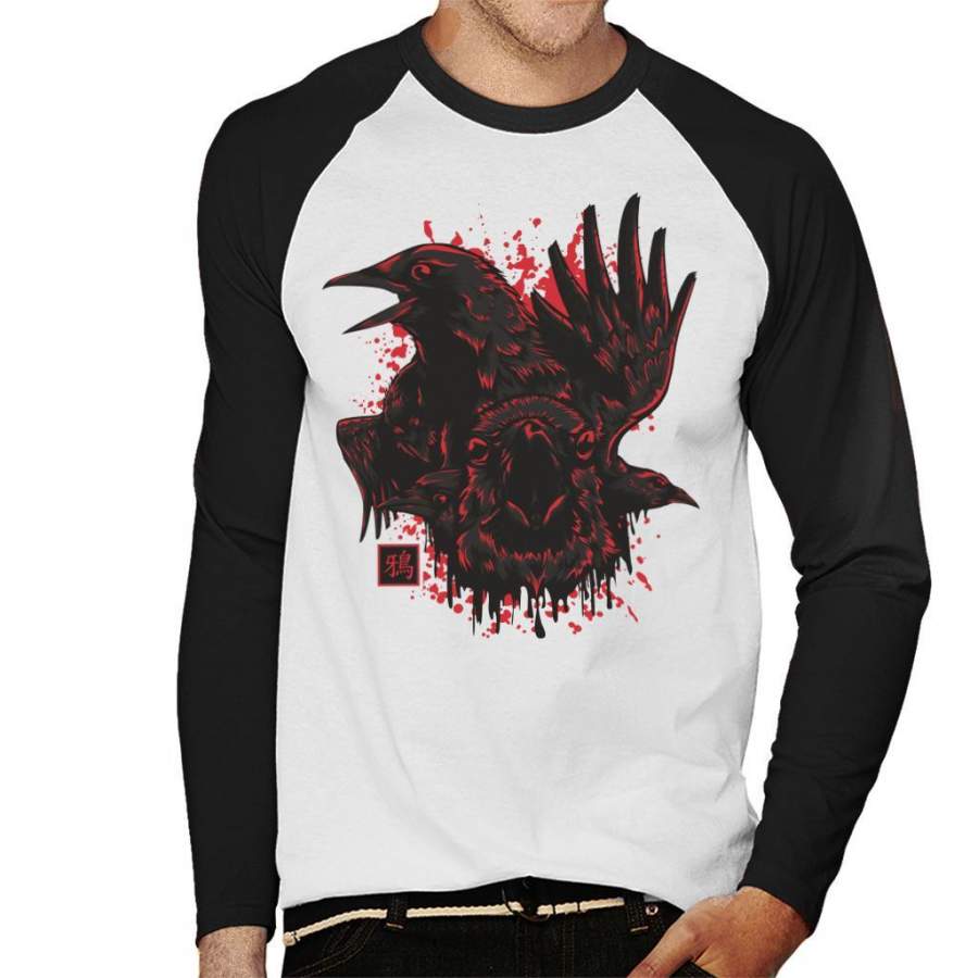 Karasu Japan Crow Men’s Baseball Long Sleeved T-Shirt