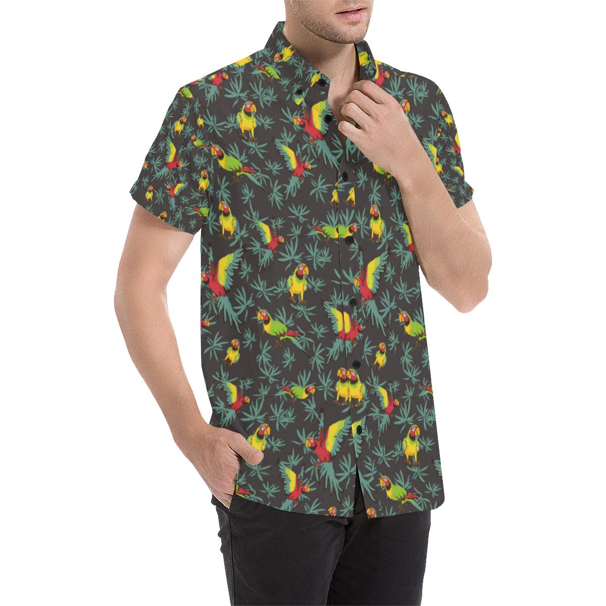 Parrot Themed Print Men Button Up Shirt