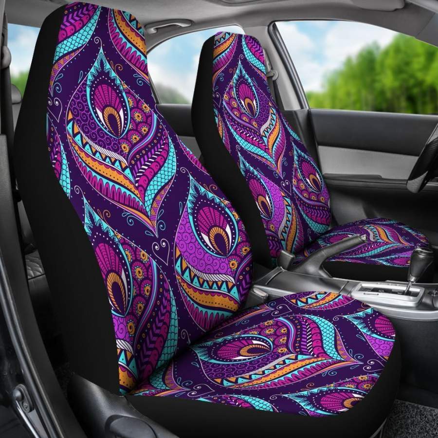 Purple Bohemian Peacock Feather Print Universal Fit Car Seat Covers