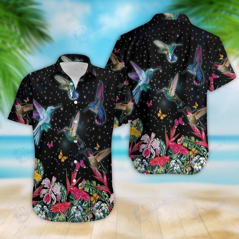 Sparkling Hummingbird In Flower Garden Hawaiian Aloha Shirts