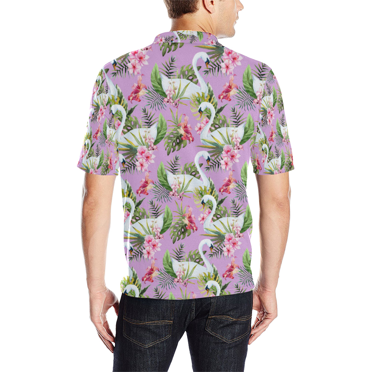 Swan With Flower Pattern Print Design 01 Men Polo Shirt