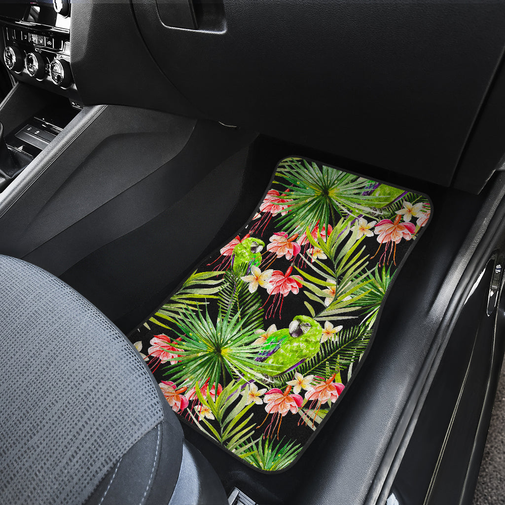Tropical Hawaiian Parrot Pattern Print Front And Back Car Floor Mats, Front Car Mat