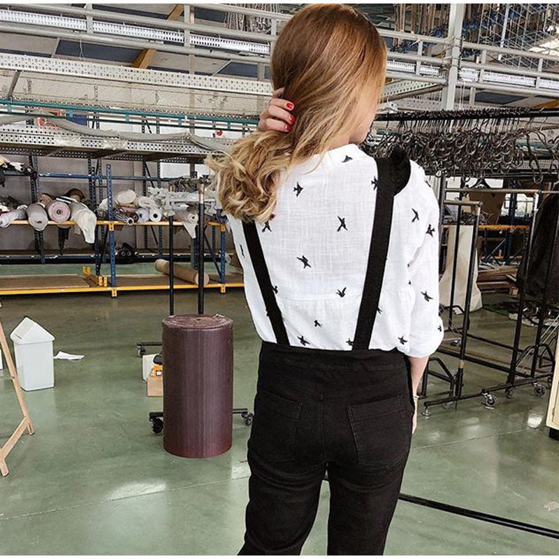 Women’S Birds Print Shirts Blouses Cotton Linen Long Sleeve