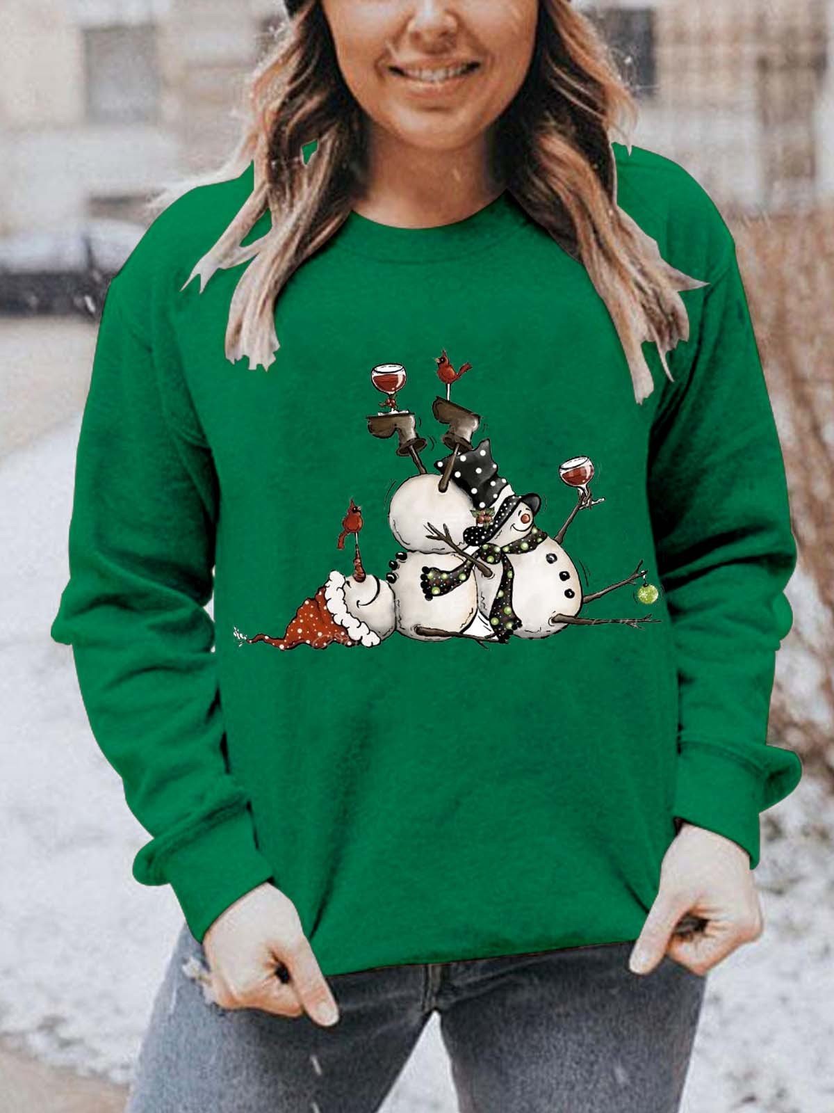 Women’S Two Snowman Slip Wine Birds Sweatshirt