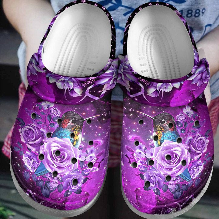 Purple Roses With Hummingbird Shoe Crocbland Clog Birthday Gift For Woman Girl Grandma Mother Daughter Sister