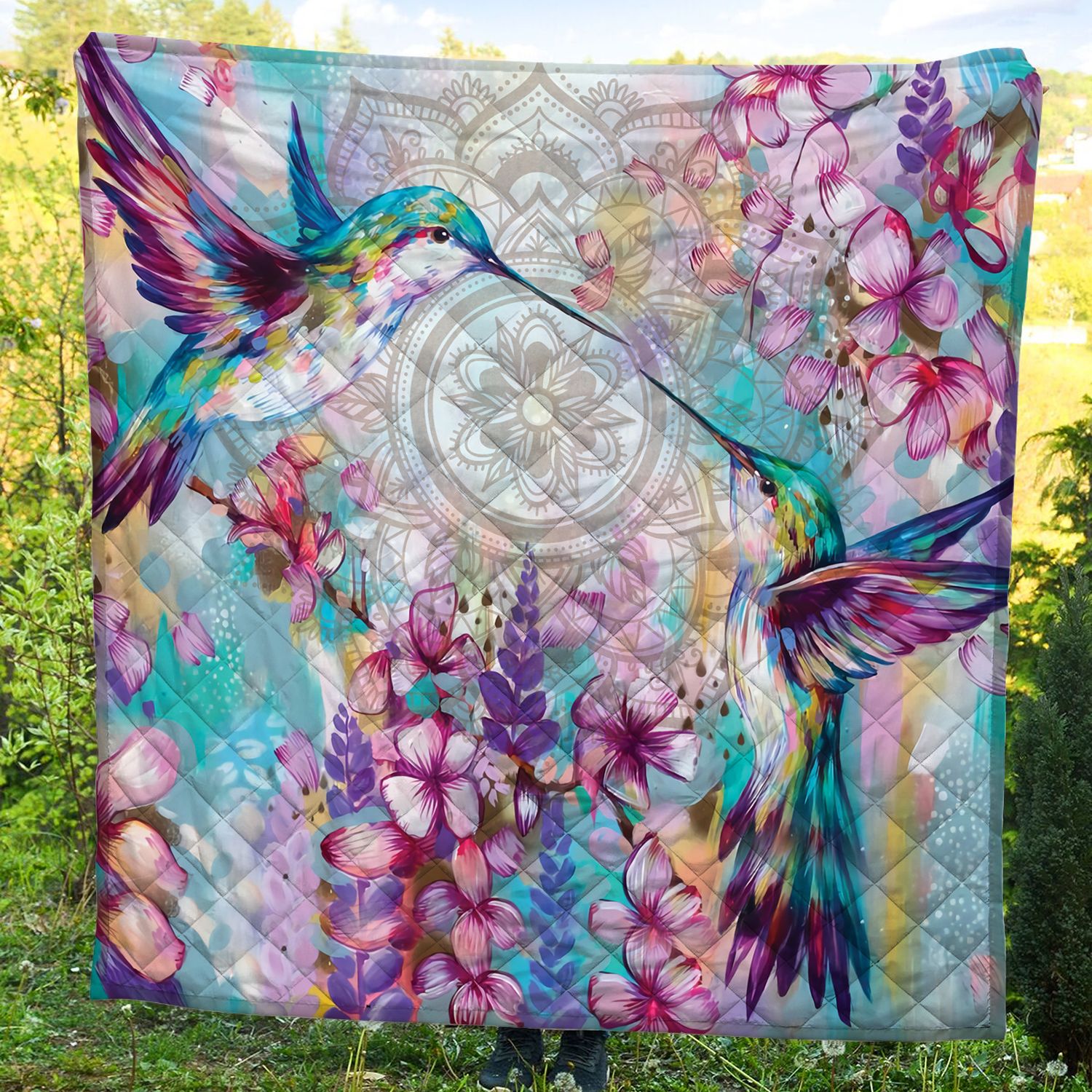 Quilt Blanket Outdoor Picnic Beach Blanket Twin Throw Queen King Size Bed Quilts Quilting Fabric – Hummingbird Flower Mandala Ty22012111
